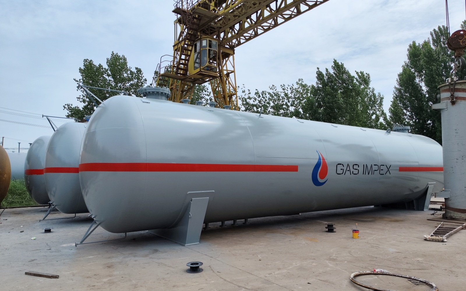 在結(jié)構(gòu)形式上,地上液化氣儲罐常見為臥式結(jié)構(gòu)(站用儲罐多采用臥式),由筒體、封頭、鞍座支座以及多處接管接口組成,結(jié)構(gòu)成熟、運(yùn)輸安裝便利。接口配置建議圍繞“進(jìn)、出、回氣、排、放、測、檢”進(jìn)行系統(tǒng)規(guī)劃,常見包括進(jìn)液口、出液/出氣口、回氣口、放空口、排污/排凈口、液位與壓力測量接口、人孔檢修口等。對地上布置項(xiàng)目,閥組一般采用閥組平臺或操作區(qū)集中布置,便于日常巡檢、操作與檢修維護(hù)。